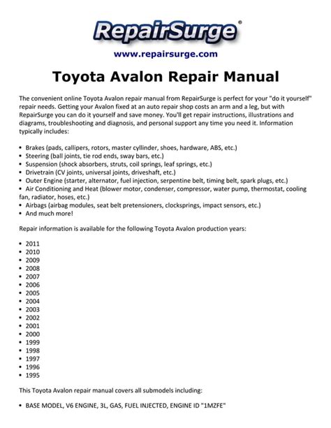 Read 1995 avalon service manual pd Kindle Editon